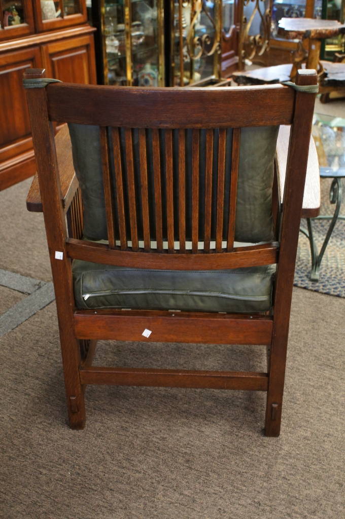Antique Mission Style Slat Back Arm Chair W/ Green Leather Cushions Stickley?