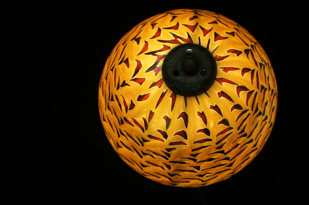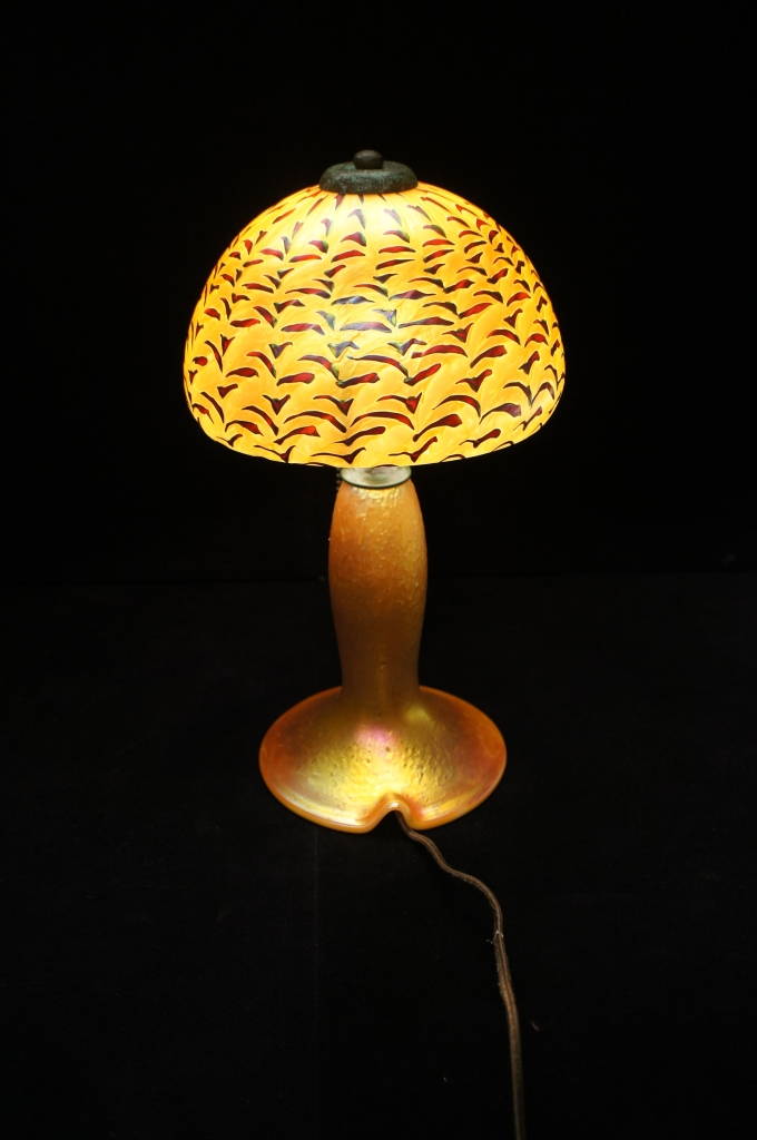 Lundberg Studios 1995 Dore Red & Green Indian Basket Boudoir Lamp Irridescent