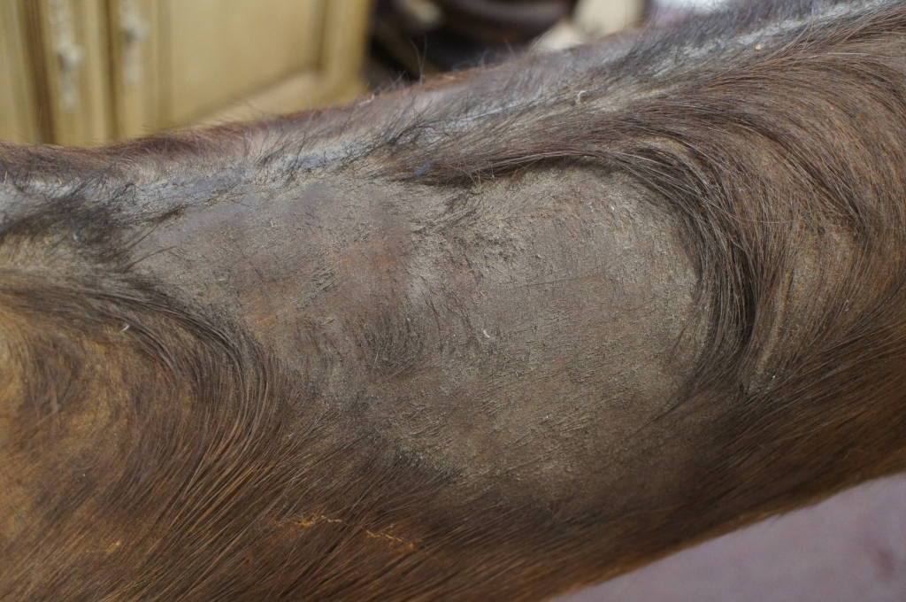 Here is an amazing Lowland Nyala from South Africa. A great full size hunting trophy. The Lowland Nyala orNyala angasii/Tragelaphus angasiiis a largespiral hornedantelope. The Nyala is a shy animal and herbivore. The stand is on rollers for easy movement. Comes with a Silver Award plaque from Safari Club International honoring the gunsman.