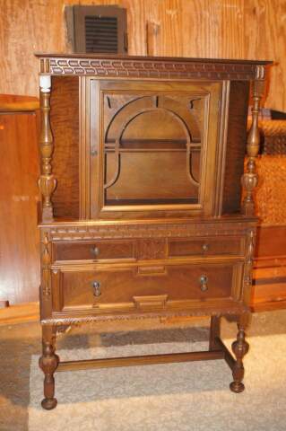 Unique Mid Century Modern China Cabinet Carved Scroll Work Dove Tail Ornate