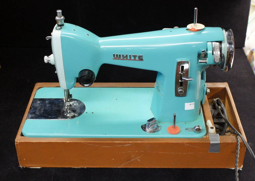 Vintage Antique Turquoise Blue White Brand Sewing Machine Foot Pedal #1514