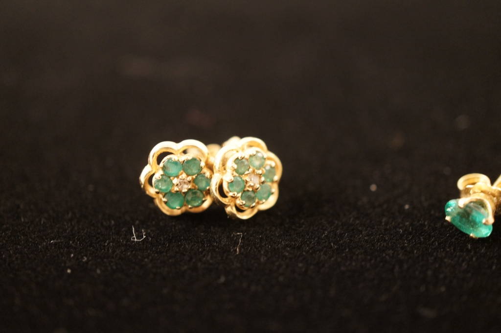 2 Pairs of Emerald Earrings Beautiful Clover Green Medallion Gold Oval