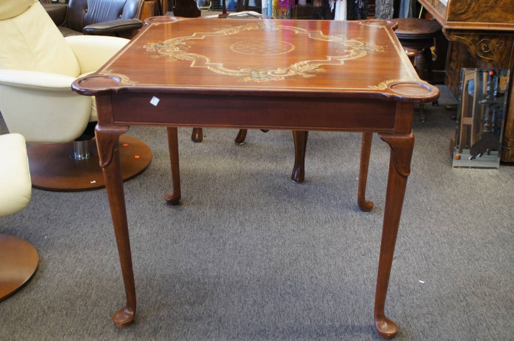 Lovely Medallion Painted Game & Card Table Floral W/ Pad Feet Cup Holder