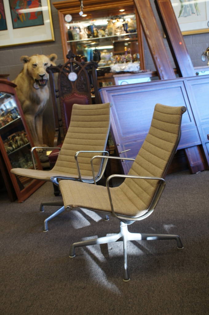 2 Unique Vintage Herman Miller Brushed Aluminum Group Lounge Chairs Eames Cool