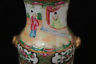 This is a great piece from mid to late 19th century China. It is a Famille Rose vase and it is decorated with floral rose patterns, hand painted hummingbirds and Butterflies, as well as some traditional scenes from Chinese life. This piece also has handles that look like they might be a lion or Fu Dog head. This is a truly beautiful piece and it would make a wonderful addition to your home or collection.