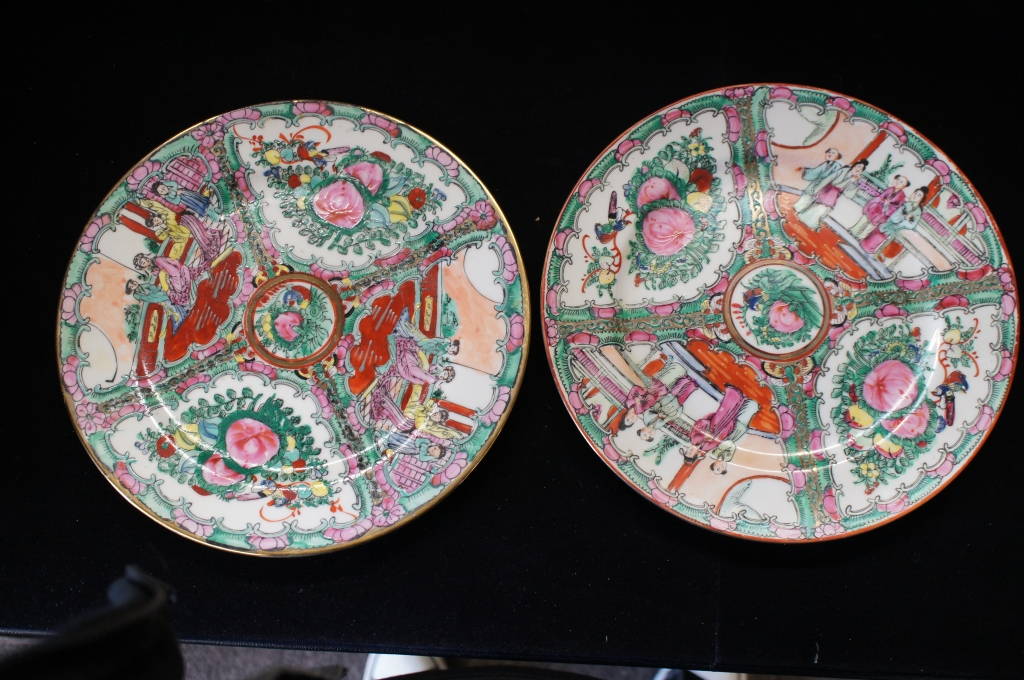 9 Asian Oriental Handpainted Familia Rose Medallion Dinner Plates Gold Trim