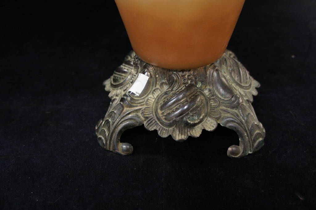 Vintage 29" Handpainted Glass Floral Table Lamp w/ Original Shade Metal Base