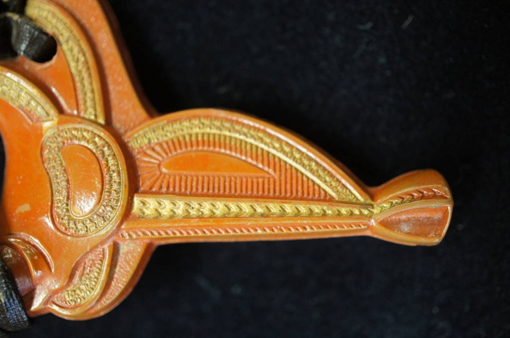 Vintage Bakelite Leather Cowboy Western Horse Saddle Pin Brooch 2.25" x 1.75