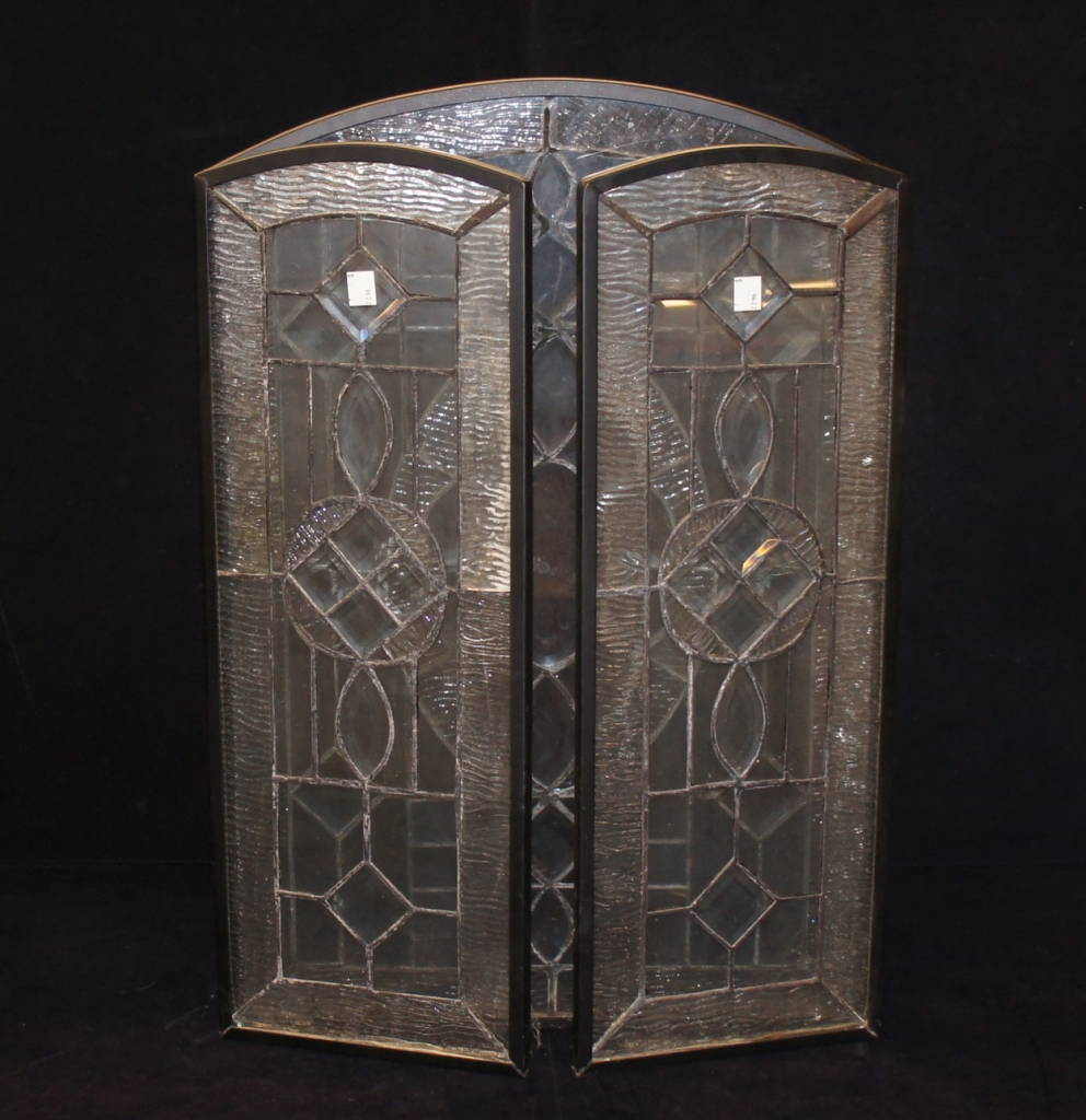 Vintage Beveled 3 Panel Clear Stained Glass Fireplace Firescreen Chic 16.25