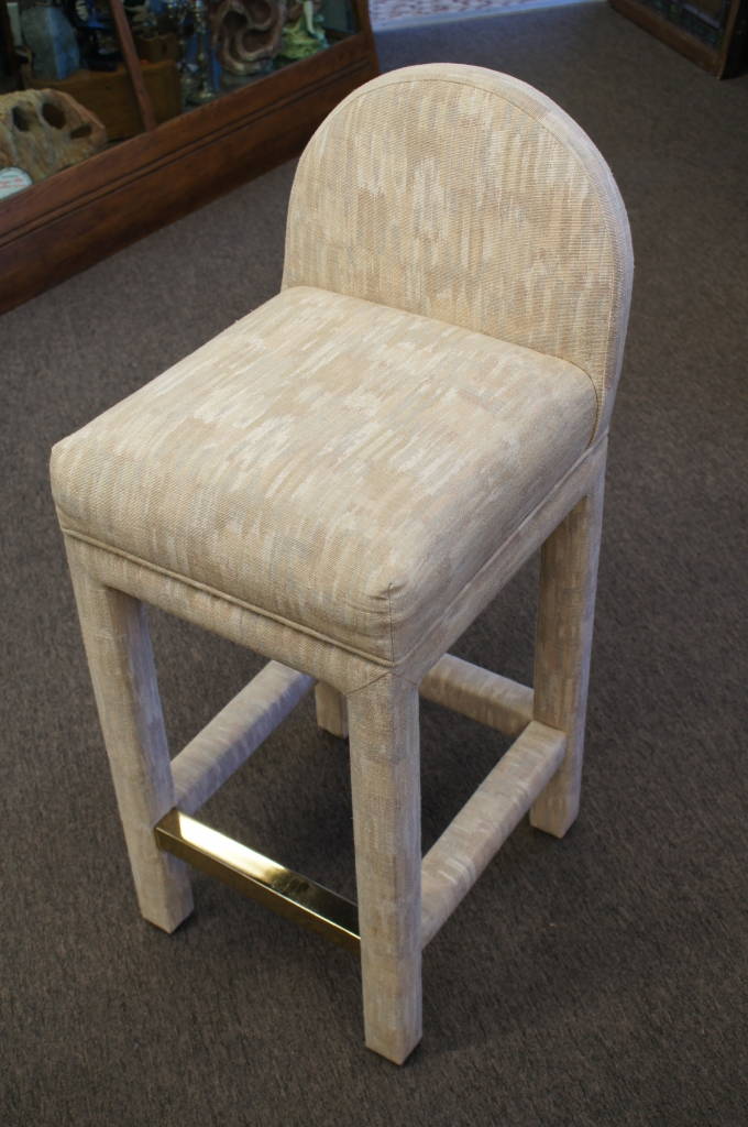 Set Of 5 Vintage Asher & Colem Multi-Color Upholstered Swivel Brass Barstools