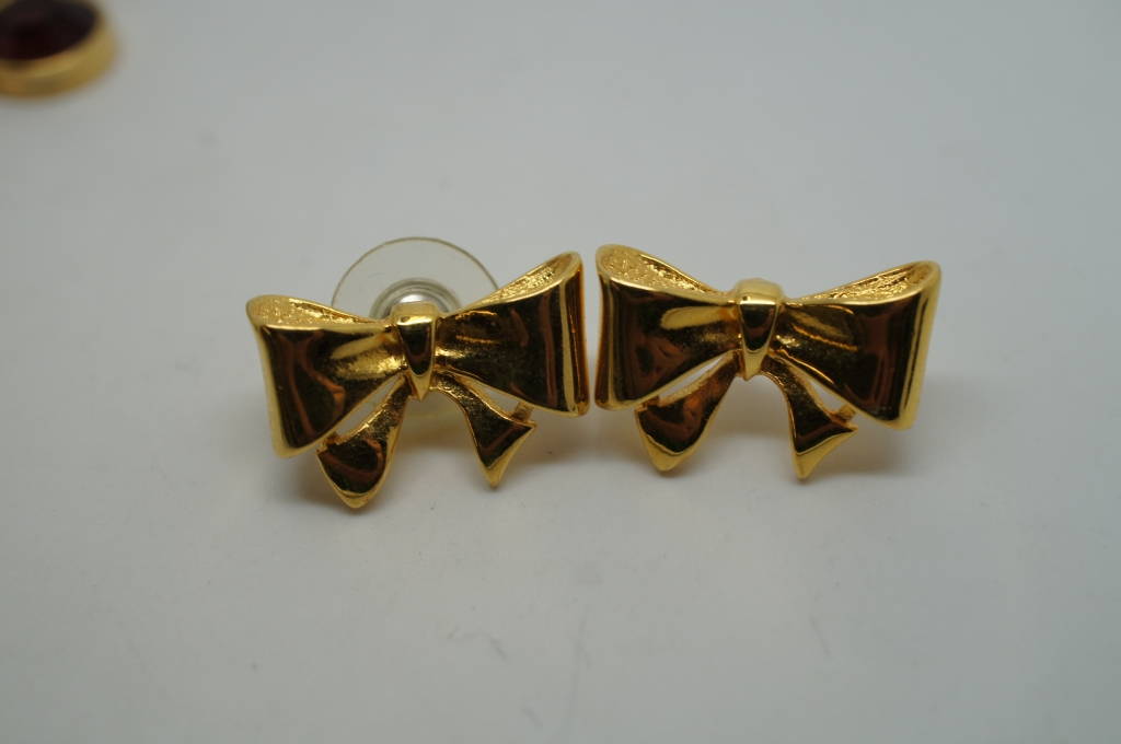 Lot Of 12 Vintage Ladies Gold Toned Ribbon Sun Heart Sailor Anchor Earrings