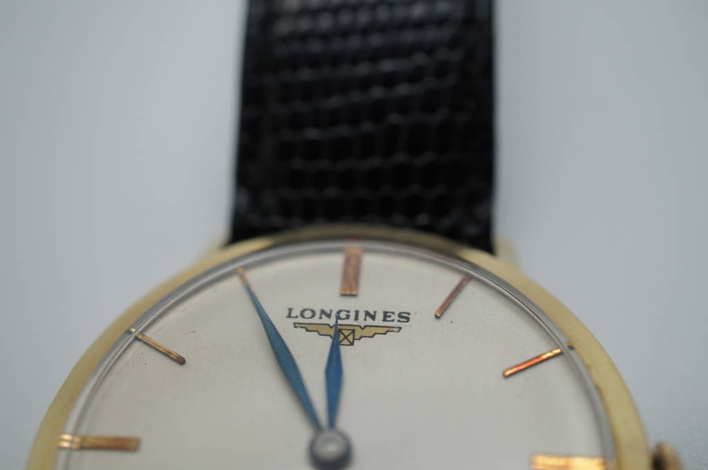 Vintage 14K Solid Gold Mens Longines Watch Black Snake Skin Band Manual Wind