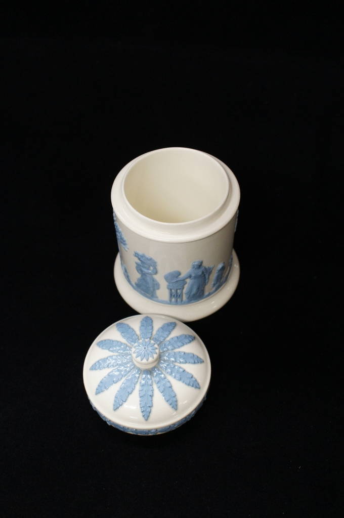Vintage Wedgwood Of Etruria & Barlaston Embossed Queens Ware Cigarette Jar