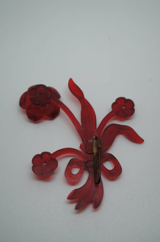 Large Vintage Ladies Rare Carved Red Rose Flower Design Bakelite , removed