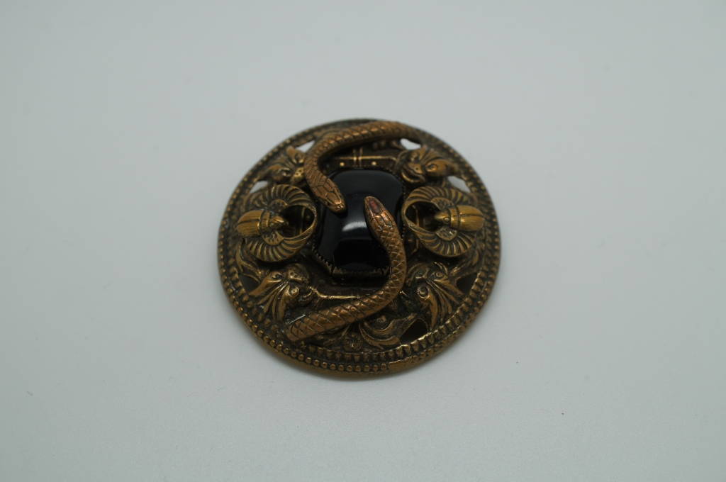 Vintage Antique Stunning Rare Brass Black Gemstone Snake Pin Brooch